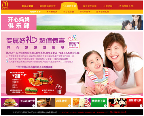 McDonalds China 网站也是,主导航中就包含欢乐家庭聚餐。