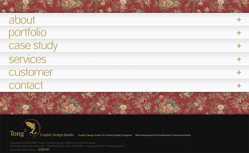 Tong2 Studio,使用传统中国花色做背景,显得很特别。