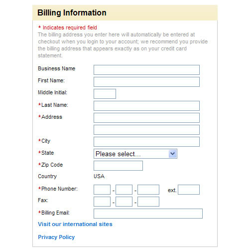 下面这个来自Office Depot’s registration page的例子展示了将星号的解释文字合理的放置