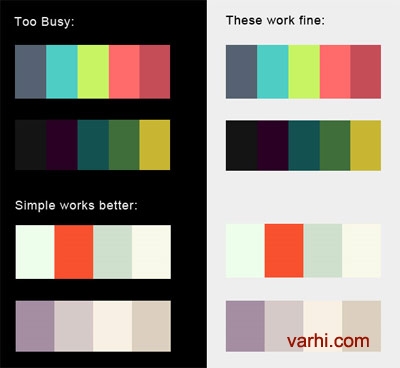 通过一下几个简单的例子,过多的颜色配色方案针确实无意于深色调设计的,因为这样的配色对比太强烈了。
