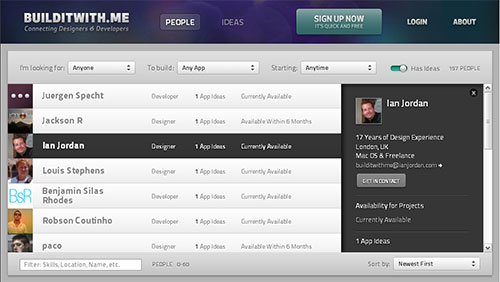 BuildWith.me有一个简单而有效的用户界面,它并没有为此牺牲美观。