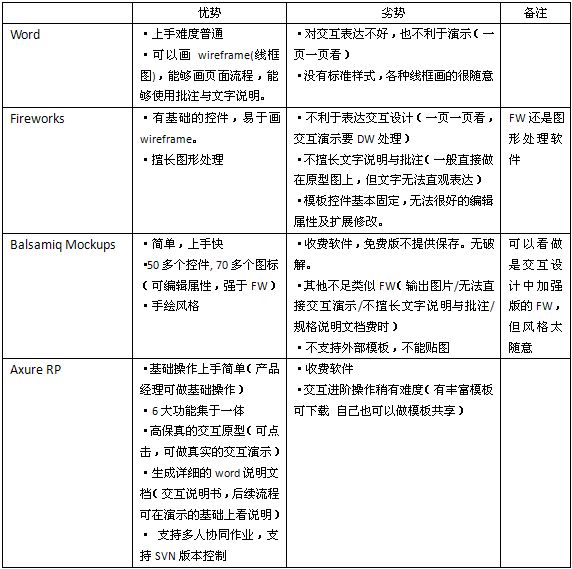 通过以上几个方面的比较,4个原型工具在绘制wireframe的基本操作上不相上下,各具特色。但Axure RP快捷而简便的创建基于目录组织的原型文档、功能说明、交互界面以及带注释的wireframe网页,并可自动生成用于演示的网页文件和word文档,以提供演示与开发等方面完胜,我们给于其★★★★★评价,不愧为产品经理基本基本原型设计和交互设计师做快速高保真原型的一把利器。