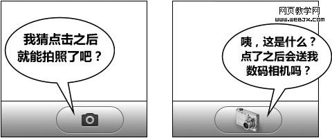 最左边的图显然是个特定的男士,而右边那个笑脸形象几乎能指代任何一个人。从这个例子看得出来,如果为了表达一个概念而使用隐喻,那视觉上的细节就必须减少。而事实上实际场合中我们所使用的界面控件一般不会去指代一个特定的东西。