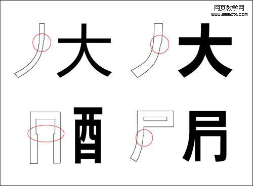 3 调整字的局部粗细来改善字的结构,提高字的品位