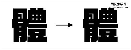 这两个字一粗一细,视觉上看是两款字,粗细调整不当。首先,把细的“體”字加粗,使两个字的视觉粗细一致。