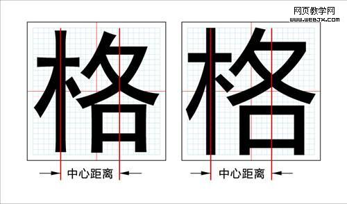 字面大小又可分为可测量的字面大小和视觉上的字面大小。已故字体设计大师谢培元老师在1962年归纳总结的“第二中心线”理论已表明,汉字由形声组合的字都是可以测量的,形旁和声旁这两个部件的中心距离越大,字面就越大,反之,字面就越小,我们只要测量这两个部件的中心距离就可以得到相应的字面大小值。同时,这也是控制整副字大小的有效工具。