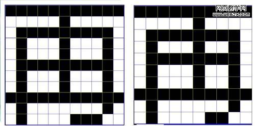从上面两图比较中我们可以看出,左图字面大,占像素多,内白均匀舒适、清晰易读。右图字面小,占像素少,因此,内白不匀称、识读效果变差。