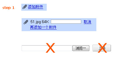 过去的gmail附件上传步骤是:1、点击“添加附件”(点击后出现一个不带提交按钮的上传组件),2、选择文件(选完后自动开始上传)。去掉了那个提交按钮。