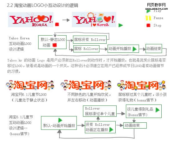 以上所有的互动指令都是使用了鼠标Rollover的方式,那么我们是否可以使用Press(左键点击)的动作呢?如果节日LOGO只是出现在首页(像淘宝那样),此时并不作为一个回到首页的救生圈功能,那么Press与Rollover可以是一致的。然而在网络广告中,Press已经默认成为一个跳转的指令,所以在一般只是起展示作用的视觉设计中,用Rollover比Press更容易让受众“安心”。不过如果在设计触摸屏FLASH互动动画时,Rollover又不太管用。