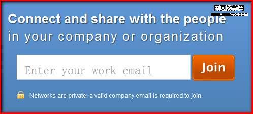 这里分享一个最简单的注册的例子,是国外Enterprise Social Network里做得非常优秀的网站Yammer。Yammer注册页面只有一个邮箱,连输入密码的操作都是放在邮件激活以后的。