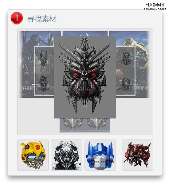 制作之初,脑海里就反复罗列一些极具复杂的图形,闪闪发光,搜集的变形金刚素材: