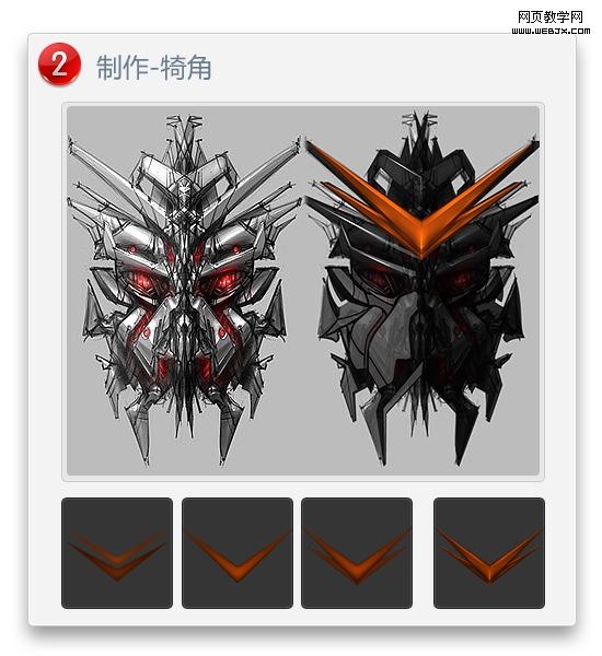 大部分的效果是靠图层叠加出来的,用了很多混合样式,阴影,高光的处理也尤为重要。