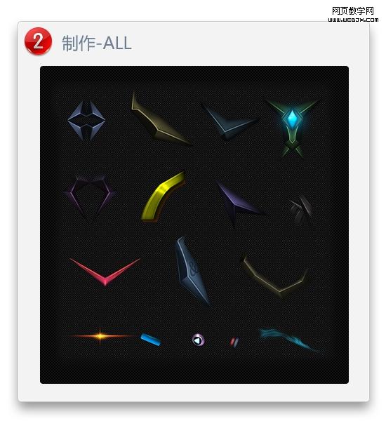 颜色保守,以免后面难于把控,强化边缘,都有加2到3像素高光线,华丽丽的感觉,效果还算满意,第一步算是完成了。