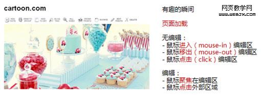 邀请编辑——默认情况下,标题正常显示。当鼠标悬停在标题上,标题立刻显示黄色背景条和一个“click to edit”的提示条出现,这种邀请提示的好处是——告诉用户当前区域是可编辑的并引导他们去点击。