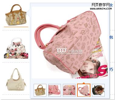 淘宝的listing页面一次改版,鼠标悬停在宝贝图片上时,不仅出现大图,同时还在时间维度上对卖家推荐的商品轮播显示,用户同样可以点击下方的小图来选择查看。不仅保证了关键内容可见,同时解决了多信息的展现和交互。