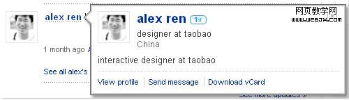 Linkdin消息列表中,用户名承载着两个交互行为:鼠标点击后会跳转到用户profile页面,而鼠标悬停0.5秒以后出现弹出层,显示该用户的简介。如果我们不做0.5秒的限制,就会出现用户在鼠标以上去时立刻显示弹出层,那么很可能会有用户认为这个链接只具备这一种操作功能,而忽略了它可以点击的功能。所以对一个交互行为只赋予它一种功能,多种功能需要考虑用其它方式去实现。