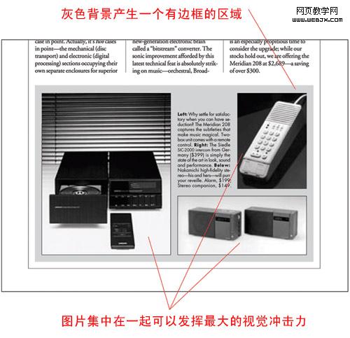 不论你的主题是什么,当你把照片组织在一起,你就能将读者的注意力放在这个图片区域上。如果考虑到做广告的人花了那么多心思和金钱也只是要吸引人们的注意力,这种效果已经非常不错了,而且并没有增加额外的花费。