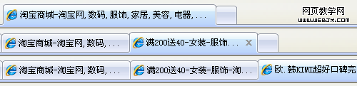 所有点击均弹出新窗口。我们回到IE7的Tab上,看看每一步点击後,Tab有什么变化: