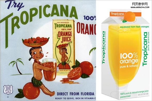 很多评论意见诋毁阿尼尔 (Arnell Group) 集团为“纯果乐” (Tropicana) 设计的包装和标识,认为他们平淡无奇。在出乎意料地遭遇到公众的抗议后,“纯果乐”被迫回归到以前更特别一些的包装:橙子和条纹吸管作为主题。但没多少人还记得,在这个象征性的橙子之前,荣登果汁包装的是一个有种族歧视意味的商标人物——“俏