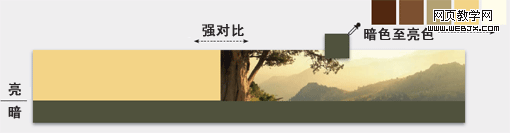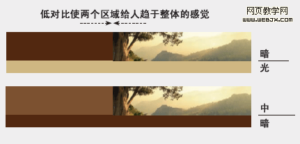 强对比更具冲击力:上述所有的颜色都拥有同一种色调。而且这些颜色理论上都是来自于图片,可以说,无论你如何将颜色分配到区域中,一般来说,都可以形成协调的搭配。但对比度却会因你的不同分配而有所区别。强对比具有冲击力,而低对比显得更平静(但也因此给人的印象不深)。