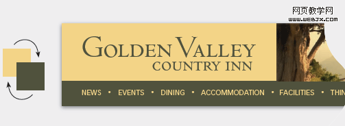 首先留意上图中,文字在颜色使用上的互换。绿色的文字用在金黄色背景上,反之,金黄色的字体用在绿色背景上——这样的互换使用可以使整个版面显得更加统一协调。