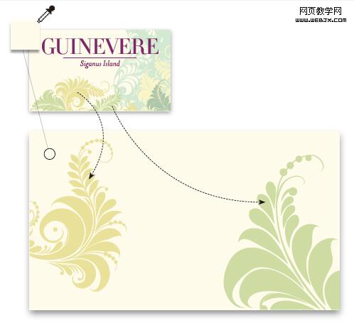 相同的背景及图案:在上面这个内页设计中,我们从原图案中采用其中两个元素来设计,并且放大;其中一个元素将其镜像翻转并且旋转。最简单的上色办法就是直接采用外页的颜色用在内页上,这使到内外两页的颜色自然形成良好的搭配效果。