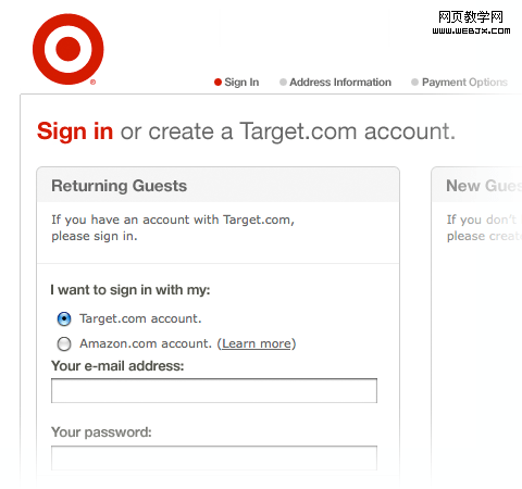 付款过程和网站上浏览型的网页不同。在付款过程中,用户并没有在购物。这意味着所有的浏览型操作在这里都是多余的,这只会分散用户的注意力,影响他正在完成的任务。设计时,要把那些不需要的元素去掉—比如,商品目录链接,热销商品推荐等,使界面保持简洁。