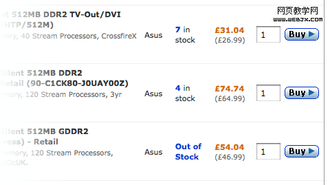 Overclockers 在商品列表中,就列出了详细的库存数量信息。