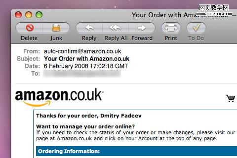 亚马逊网站会在用户付款后,发送关于购买的商品详细信息的邮件,并告诉用户如果买错,如何在商品发货前修改。
