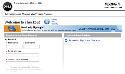 戴尔网站的付款页面,就没有商品的目录链接,而是让用户把所有注意力放在付款流程上。