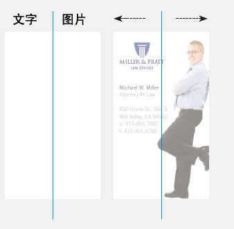 文字左边,图片右边:这是让设计变得简单有效的方法,直接将版面分成两等分,然后各自放上相应的信息即可。标志及联系信息要左对齐,而图片则要靠右对齐。