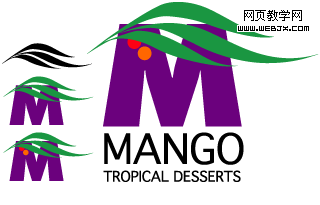 紧密可以有很多种形式。上图黑桃压着字母J,同时黑桃仍然能够完整地呈现,但是下图则相反。在这里我们在 M 上加了些修饰,让波浪元素像叶子一样盖在字母上,两个圆圈很好的体现了活泼的主题。