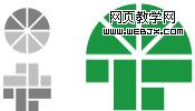 很多符号元素一般都是呈对称结构的,我们可以考虑对这些结构重新分配,如下图,从同一个基本结构中,我们可以产生三种不同的结构,而且出来的效果都不错: