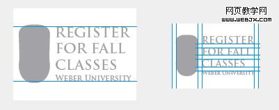还要加上文字。只有加上文字,所有的信息才是完整的。大文字同样采用白色,而大学名称采用金黄色,使其让人知道这是两个不同信息。