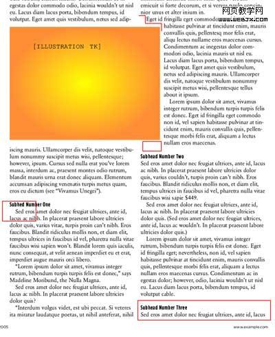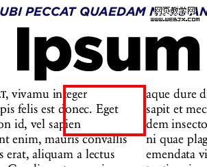 图 7 必须避免在整个版面里形成河流(红框中),看起来好象有一条白色的粗线条穿过页面一样。
