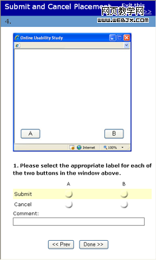 把两个按钮分开的两个设计(第2题和第4题)的调查结果是最一致的。两种情况下,都有76%的受调查者认为应该把表示继续的按钮(“确定”或“提交”)放在右边,“取消”放在左边。