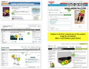 当顾客浏览购物网页时,他们的主要任务就是了解一件商品,并且购买它。他们不喜欢因为一些无关重要的信息而分心。因此,所有试验者都完全忽略掉Play.com 网页上左右纵栏的信息,特别是在全部的产品介绍都集中在一个纵栏的情况下。但是,如果购物页面设计成3纵栏式的(其中2个纵栏都是产品的相关信息),试验者会更加关注左边竖栏的信息(虽然这种倾向并不严重)。玛莎百货和约翰路易斯的页面就是这样设计的(参考下面的图片)。