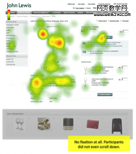 然而,所有的试验者都忽略了约翰路易斯网页底部的“你曾经浏览的商品”这一部分。他们向下滚动页面,在看完产品内容后又重新向上滚动(参考下面的图片)。造成这种现象的原因是这部分与页面的其它内容完全隔绝开来,因此看起来就像是页面的尽头了。总的来说,垂直的版面会刺激顾客往下滚动页面。