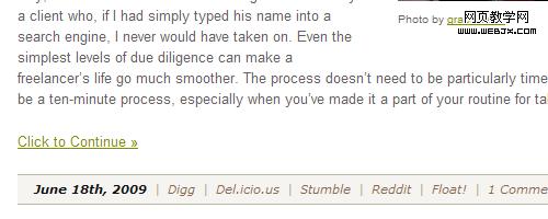 目前网站通常使用的方法,是使用简单的文字链接来显示"查看全文"。通常设置为下划线、粗体、颜色突出,或者加一个“>”标记。中心目的就是保证它于普通链接明显的区别开,这是很多设计师容易忽视的地方。