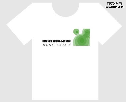 作为T恤,设计比较简单,把“唱”字的标志,放在左胸口,体现“用心去唱”的理念,同时右边用黑色字体的合唱团的名称作为平衡,中英文名称用不同粗细的字体作为对比,设计只有两个颜色,制作费用也得到了控制,下面是最终设计的应用效果图。