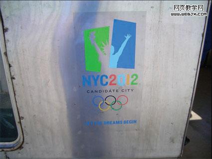 图 9 为了使人们支持纽约市申请 2012 年奥运会,有关部门采用了上图这幅作品作为申奥标志——一个结合了运动员及自由神像组合的标志。该标志在纽约市里随处可见,甚至在地铁车厢里也可见到它的身影。
