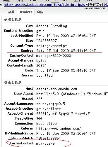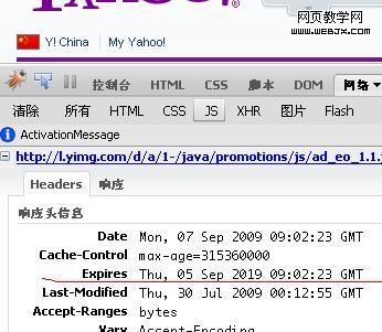 因此这个种子总会占用一个http请求,而由yui动态加载的js文件和css文件则会被强制缓存,通过js发起的http请求是可以定义http的头字段的,但往往需要cdn服务器的支持,比如cn.yimg.com、taobao的cdn和老美的yimg都强制将资源文件缓存10年。比如这个是老美的yimg过期时间,上图的taobao cnd也是如此。