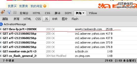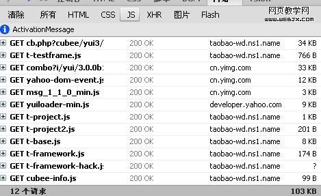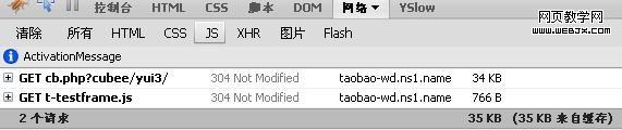 这样实际请求数就降低为2个,这就是yui动态加载js文件的优势,而在taobao首页不论怎么按f5刷新,请求数都不会减少。