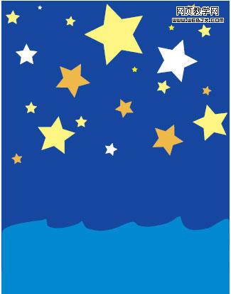 图 13 在这张图中,各个大小各异的星星与下方简单且颜色单一的波浪区域产生良好的搭配效果。
