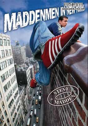 图 14 在这张以相片为基础的海报设计中产生良好的协调效果。人物作为焦点占据着很大的面积,他的鞋子与下方远处的大街背景同样形成良好的对比效果。