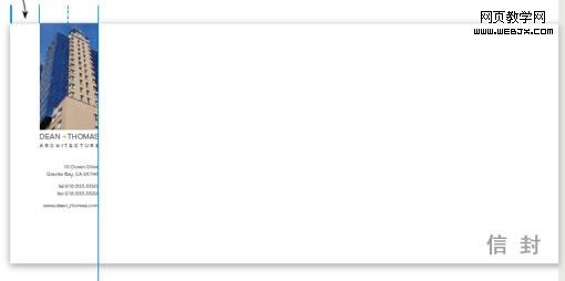 - 信纸与信封中,图片右边的边距为图片宽度的一半,而在名片中,由于版面狭窄,右边的边距为图片的三分之一。