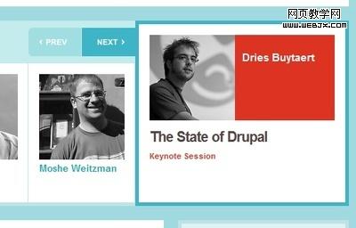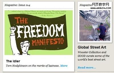 这种形式的好处是,用户可以不用多次点击来搜寻他们感兴趣的内容,可以快速的通过滚动幻灯片来浏览希望他们注意的内容。这种形式多用于娱乐站点,或者是一些大型博客。是一种非常吸引眼球的展示方式。