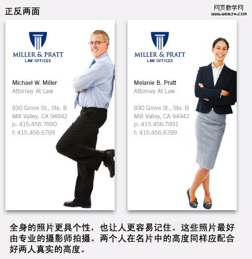 名片水平摆放显得更通用,但我们的设计版式却仍然一样。仍然是文字在左方,图片在右方。文字通过浅灰黑来细微区分。