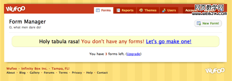 Wufoo的表单网页有很多,如果您一个也没有,友好的讯息邀请您创建一个新的表单。