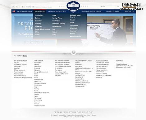 在最近改版后的白宫网站上,通过下拉菜单和页脚的网站地图来浏览网站变得更加容易。